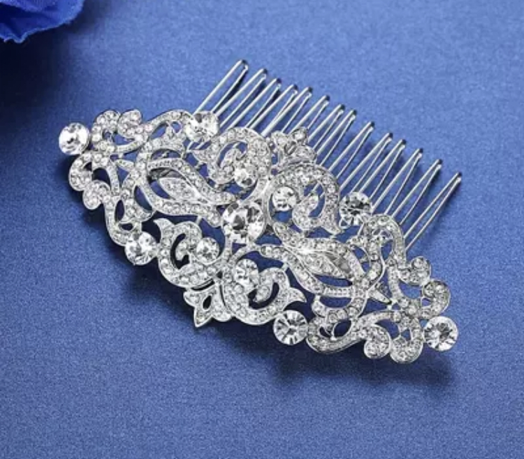 Um lindo, brilhante e delicado pente. Todo em cristais Perfeito para seu penteado. Mede aproximadamente 9 cm de comprimento x 4 cm de largura.