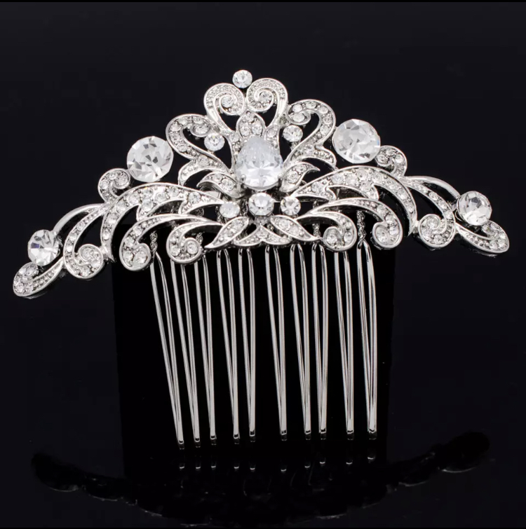 Um lindo, brilhante e delicado pente. Todo em cristais com zircônia. Perfeito para seu penteado. Mede aproximadamente 9 cm de comprimento x 3.5 cm de largura.