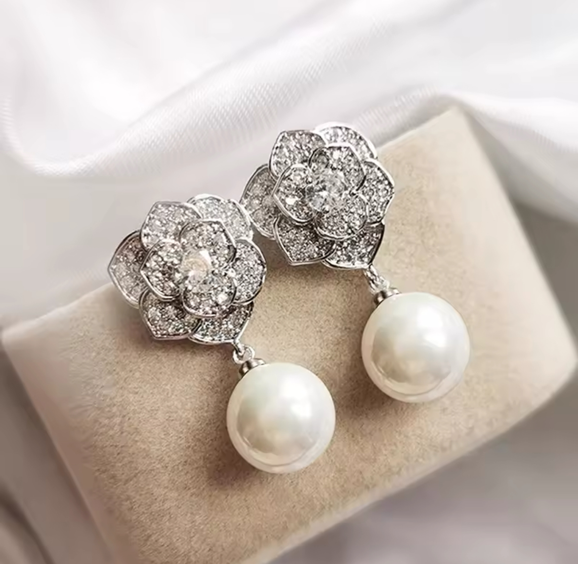 Brincos em zircônias cravadas com pérolas. Medidas aproximadas: largura 1,0 cm comprimento 2,5 cm