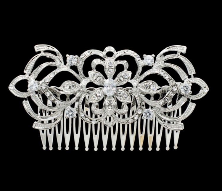 Um lindo, brilhante e delicado pente. Todo em cristais . Perfeito para seu penteado. Mede aproximadamente 9 cm de comprimento x 3,5 cm de largura.